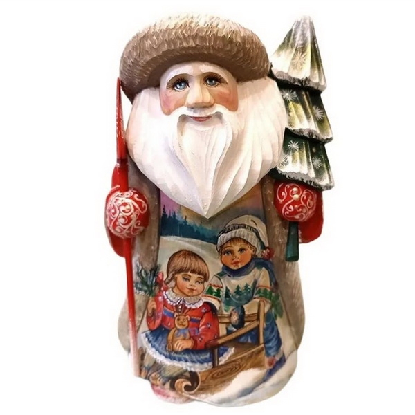 Фигурка Дед Мороз из дерева расписной №1. Высота 23 см., длина 13 см., ширина 13 см., вес 1000 гр. Богородская резьба, раскрашен вручную. Дед Мороз — главный сказочный персонаж на русском празднике Нового года, восточнославянский вариант рождественского дарителя. Украсит Ваш интерьер и принесёт радость в дом. Ручная работа, могут быть изменения, точное повторение не возможно. Все работы индивидуальные. Приятный подарок себе и своим близким.