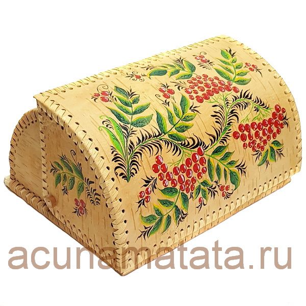Хлебница Рябинка из бересты, ручная роспись. Высота 14 см., ширина 22 см., длина 27 см. Экологически чистая продукция, хлеб долгое время остается свежим. Сибирская береста, тиснение, плетение, ручная работа. Нужная вещь у себя дома и прекрасный подарок для друзей.