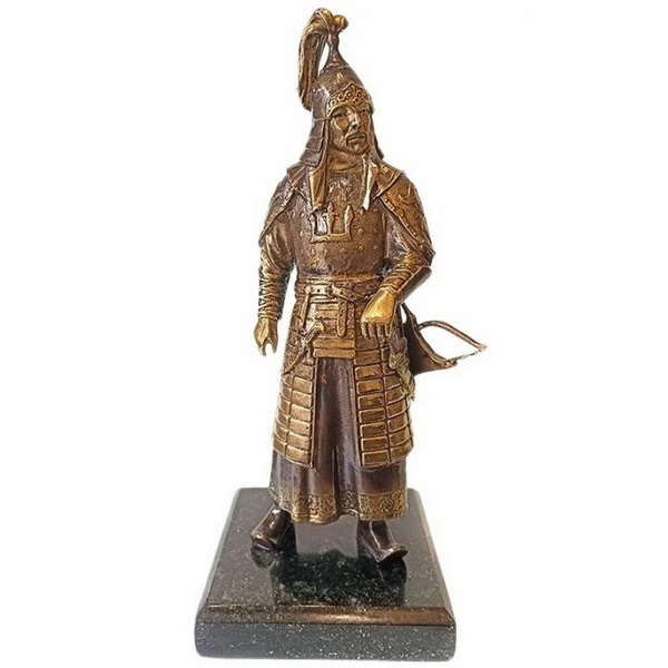Статуэтка из бронзы Чингисхан на подставке из змеевика. Размер с подставкой: высота 23 см., длина 9,5 см., ширина 9,5 см., вес 1500 гр.