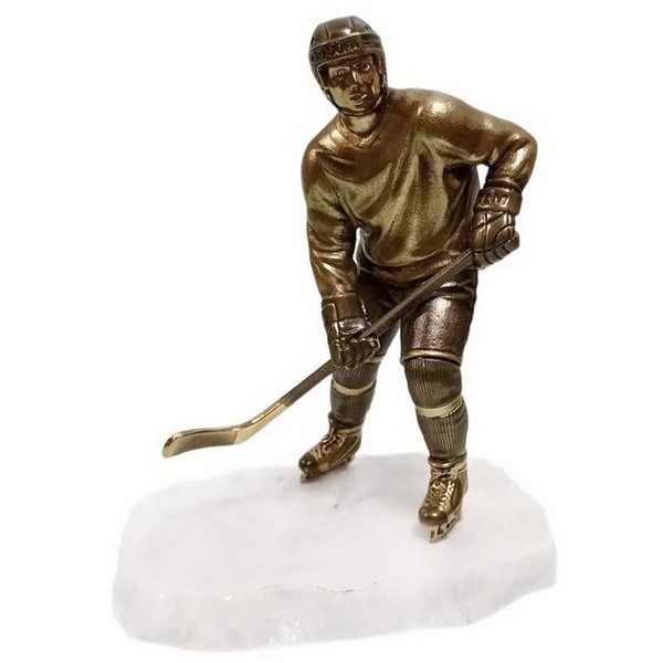 Статуэтка из бронзы Хоккеист на подставке из мрамора. Размер с подставкой: высота 21 см., длина 17 см., ширина 12 см., вес 1600 гр. Приятный подарок для спортсменов и любителей хоккея.