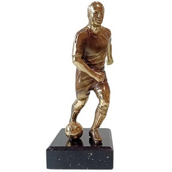 Статуэтка из бронзы Футболист на подставке из змеевика. Размер с подставкой: высота 18 см., длина 7,5 см., ширина 7,5 см., вес 850 гр. Приятный подарок для спортсменов и любителей футбола.